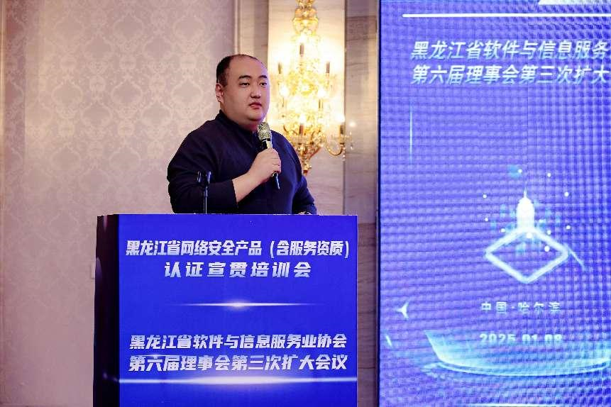 2025年1月8日,黑龙江省软件与信息服务业协会(以下简称“协会”)第六届理事会第三次(扩大)会议在哈尔滨市巴黎四季酒店隆重召开。黑龙江省工业和信息化厅总经济师岳欣、黑龙江省民政厅社会组织管理局局长陈阵出席会议。协会会员单位代表、高等院校、科研院所、兄弟行业协